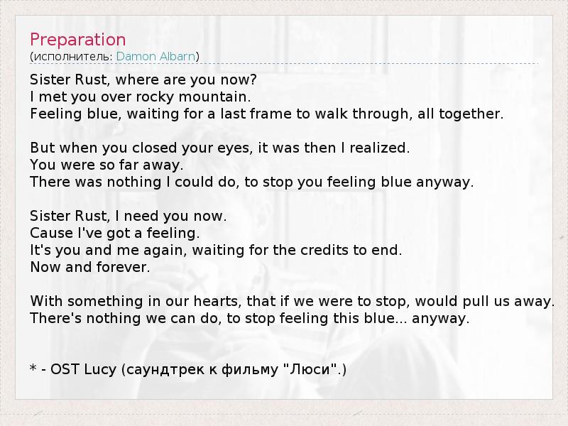 А как ты думаешь, о чем песня "Preparation" ?