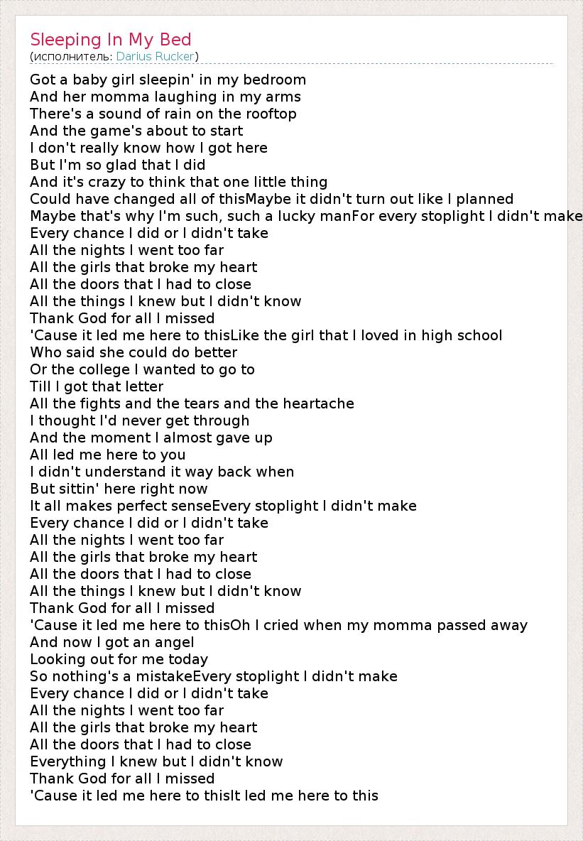 А как ты думаешь, о чем песня "Sleeping In My Bed" ?