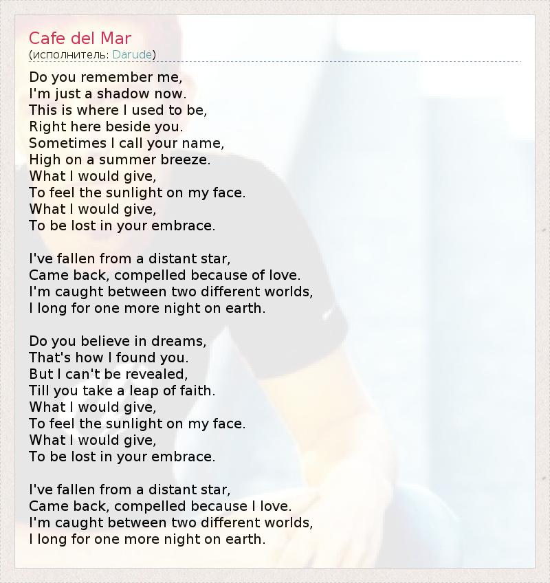 А как ты думаешь, о чем песня "Cafe del Mar" ?