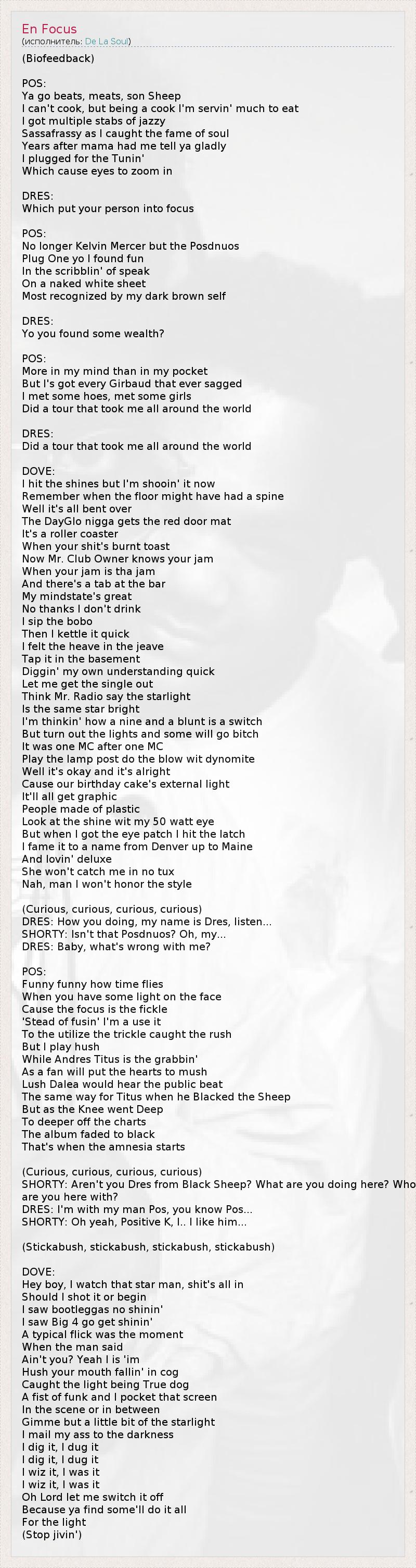 А как ты думаешь, о чем песня "En Focus" ?