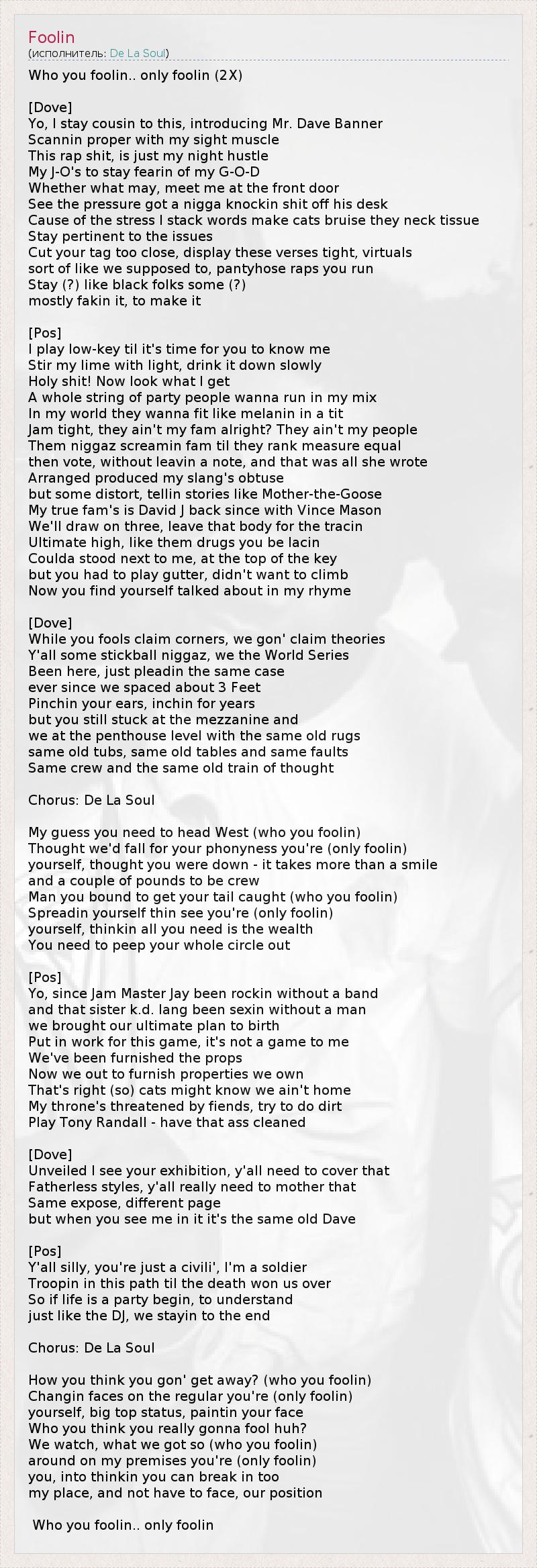 Это интересно:Благодаря участию в восхитительном сингле "Feel Good Inc" английского мультяшного ансамбля Gorillaz, американские хип-хоперы De La Soul снова в центре внимания. И даже те, кто ничего о них не слышал, набирают это название в поисковиках. А те, кто преклоняется перед этими людьми со времен их альбома "3 Feet High And Rising", удовлетворенно покачивают головами – ветераны получили второй... продолжение