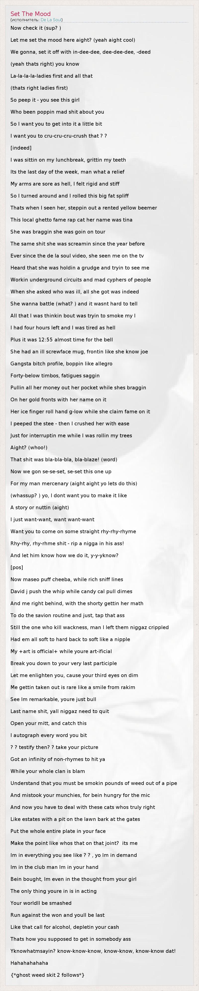 Это интересно:Благодаря участию в восхитительном сингле "Feel Good Inc" английского мультяшного ансамбля Gorillaz, американские хип-хоперы De La Soul снова в центре внимания. И даже те, кто ничего о них не слышал, набирают это название в поисковиках. А те, кто преклоняется перед этими людьми со времен их альбома "3 Feet High And Rising", удовлетворенно покачивают головами – ветераны получили второй... продолжение
