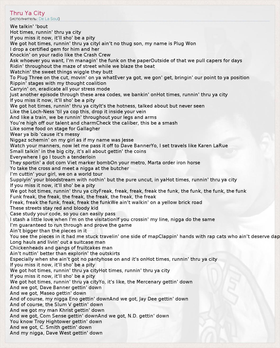 А как ты думаешь, о чем песня "Thru Ya City" ?