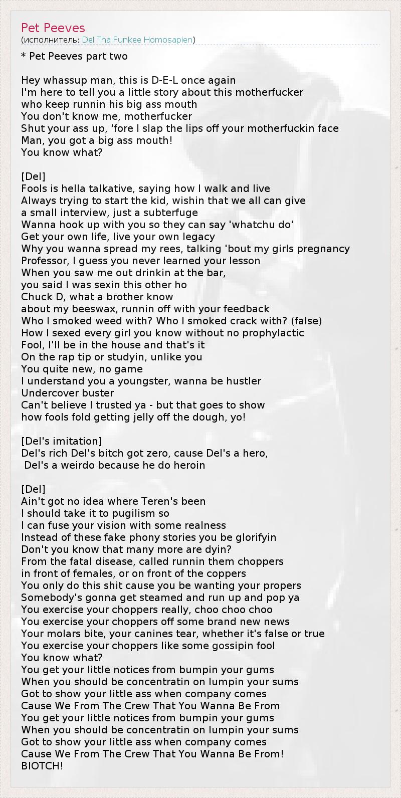 А как ты думаешь, о чем песня "Pet Peeves" ?