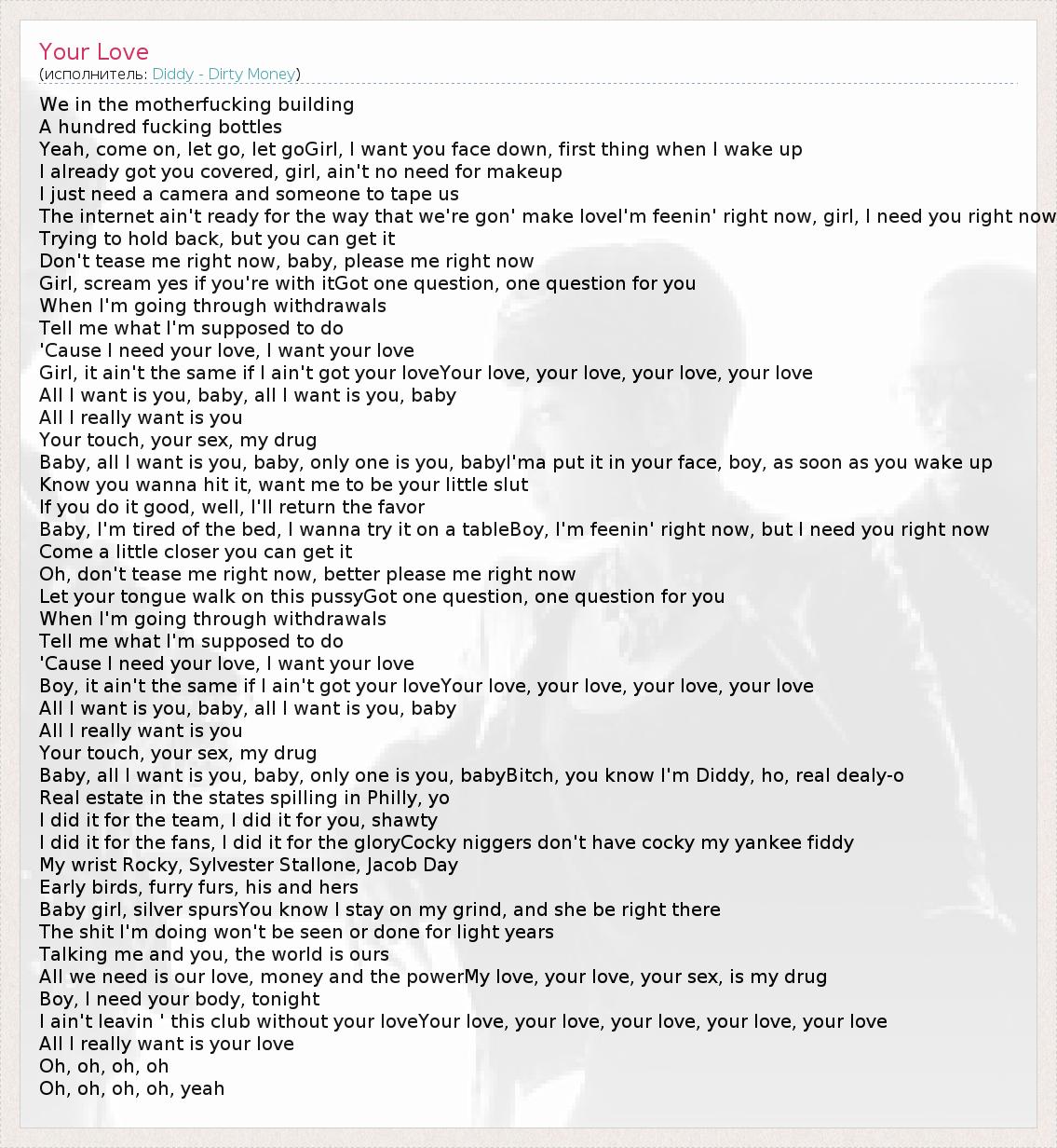 All we need is our love, money and the powerMy love, your love, your sex, is my drug
