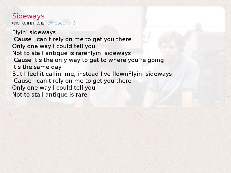 But I feel it callin' me, instead I've flownFlyin' sideways
