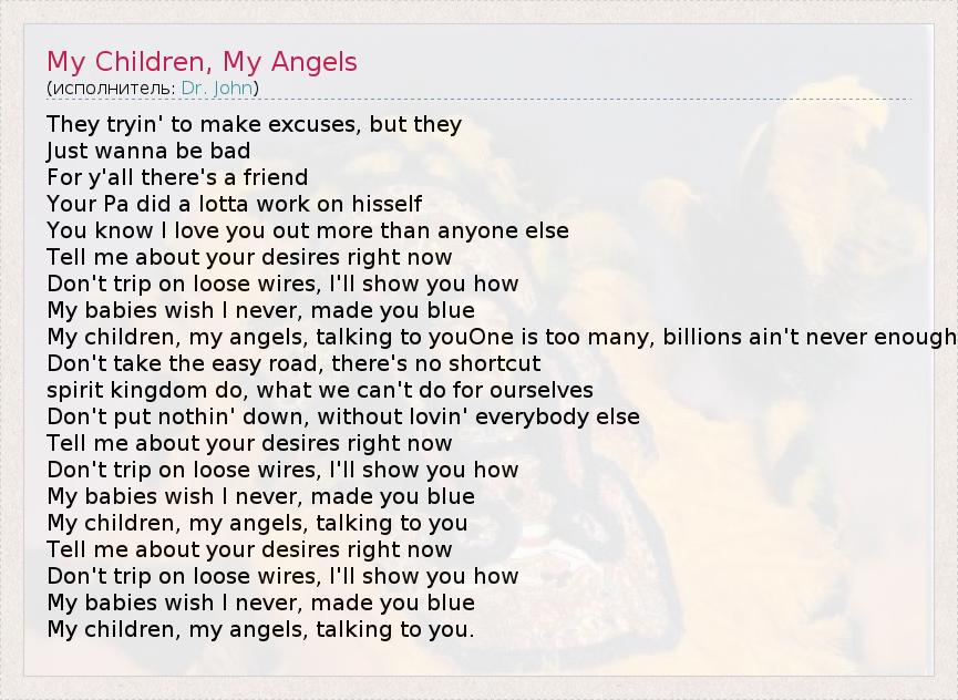 А как ты думаешь, о чем песня "My Children, My Angels" ?