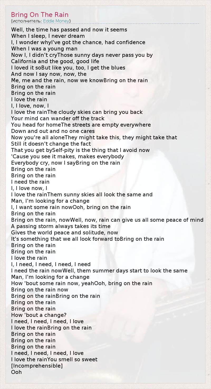 А как ты думаешь, о чем песня "Bring On The Rain" ?