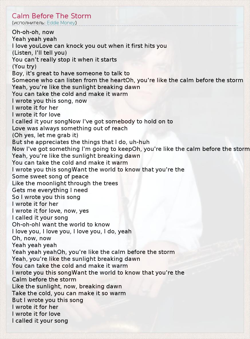 А как ты думаешь, о чем песня "Calm Before The Storm" ?