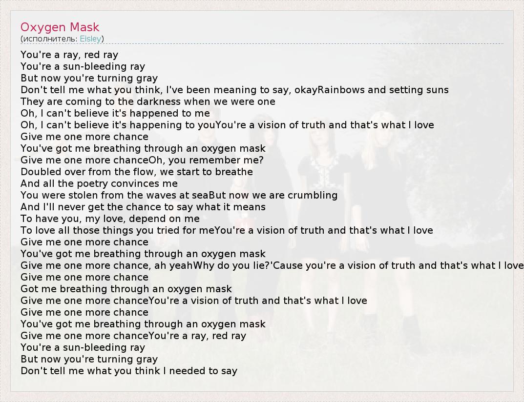 А как ты думаешь, о чем песня "Oxygen Mask" ?