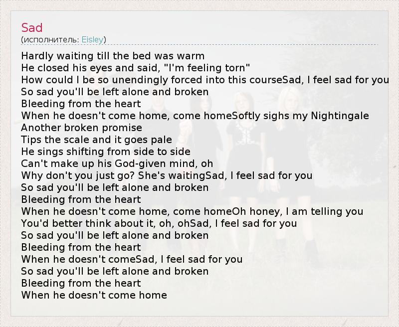 Это интересно:Eisley (Айсли) – инди-поп-рок-группа из города Тайлер, штат ТехасГруппа состоит из 5-ти участников:Шерри ДюПре - гитара, вокал; Стэйси ДюПре - клавишные, вокал; Уэстон ДюПре – ударные; Шантель ДюПре – гитара; Гэррон ДюПре – бас.Вначале, группа называлась Mos Eisley (как в Звёздных войнах), но потом, название сократили до Eisley, перед туром с Coldplay.Eisley выступали с такими группами, как Taking Back... продолжение