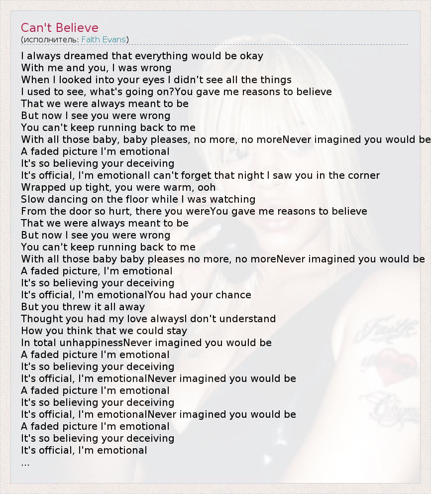А как ты думаешь, о чем песня "Can't Believe" ?