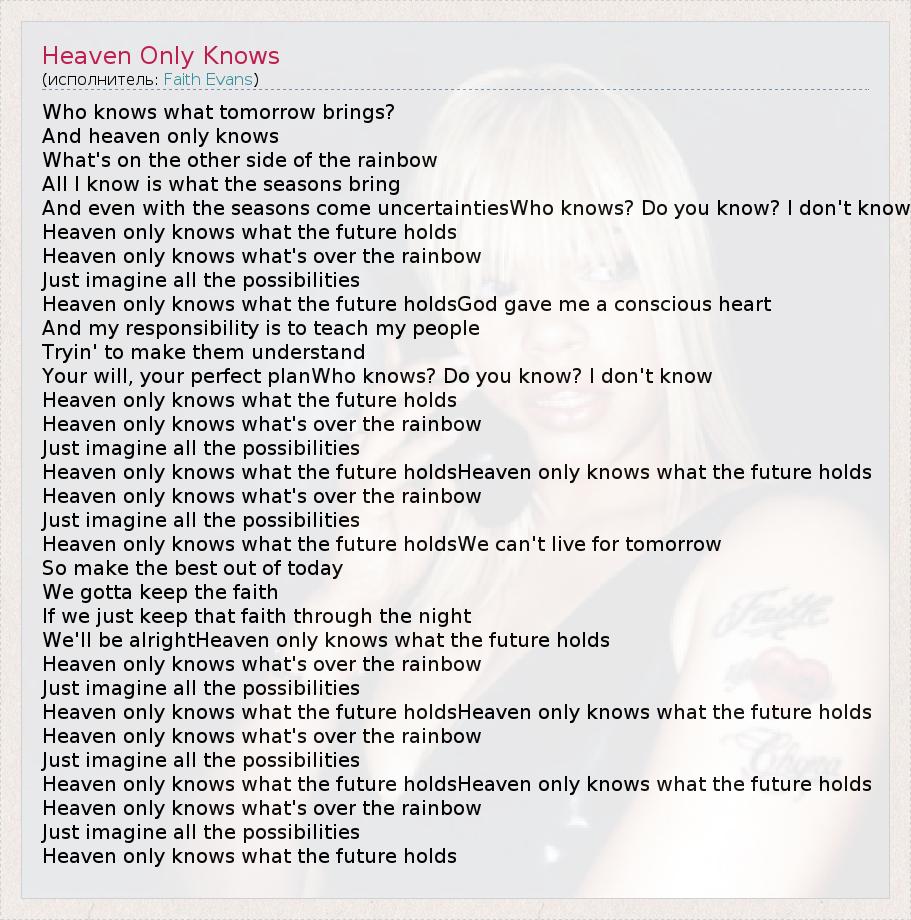 Heaven only knows what the future holdsHeaven only knows what the future holds