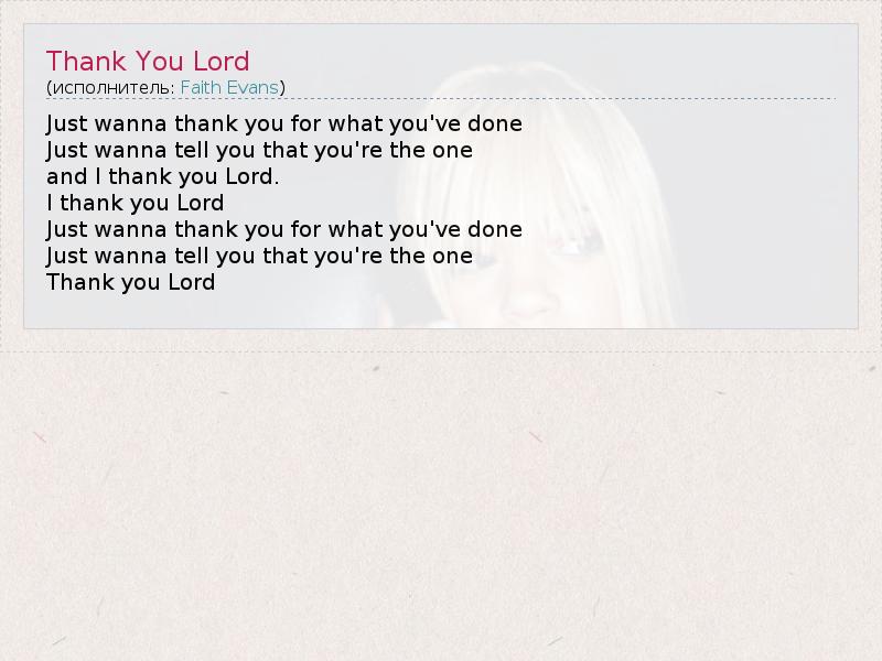 А как ты думаешь, о чем песня "Thank You Lord" ?