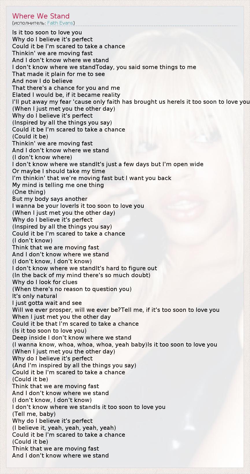 А как ты думаешь, о чем песня "Where We Stand" ?