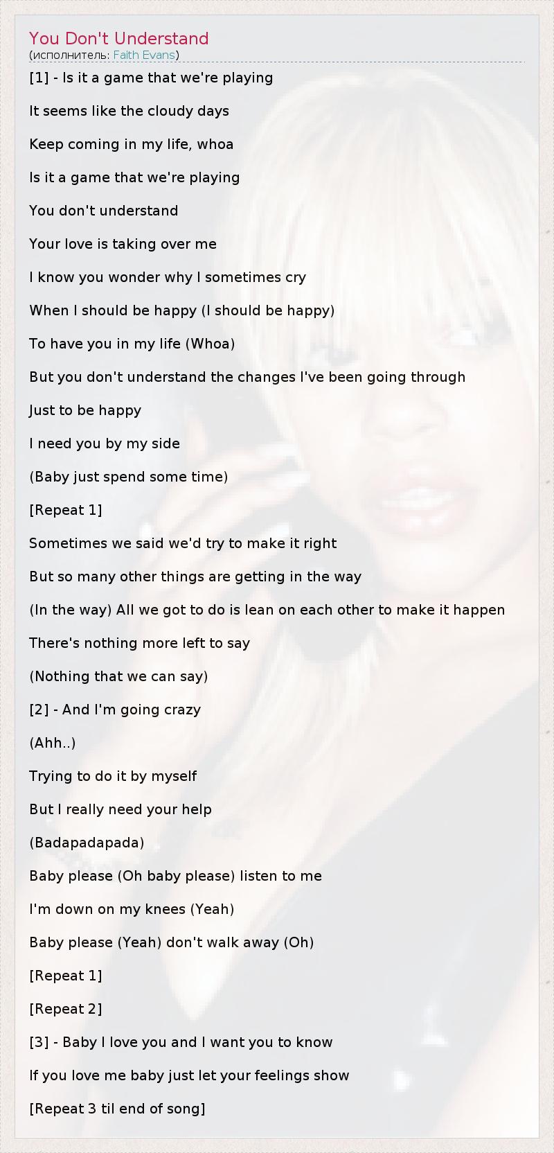 А как ты думаешь, о чем песня "You Don't Understand" ?