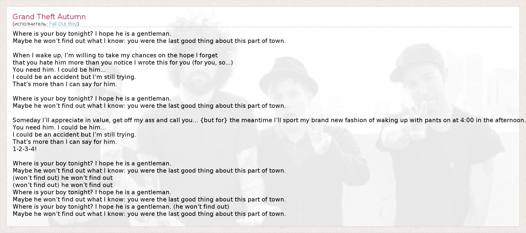 А как ты думаешь, о чем песня "Grand Theft Autumn" ?
