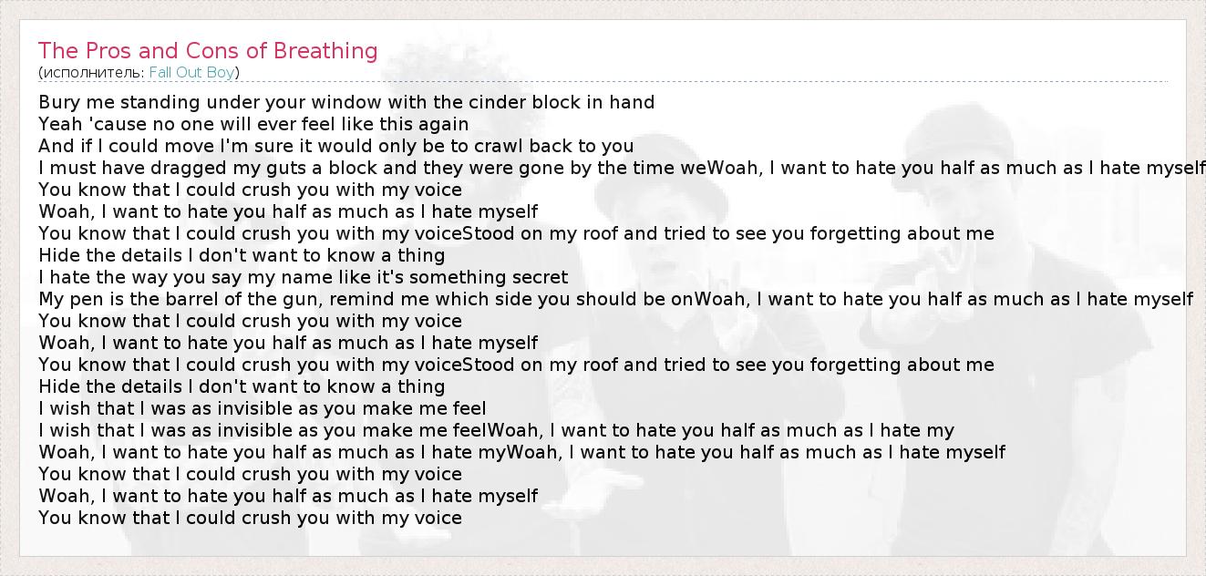 ГлавнаяИсполнителиFall Out BoyThe Pros and Cons of Breathing