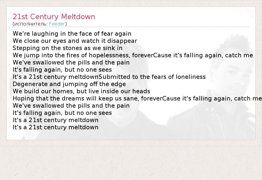 ГлавнаяИсполнителиFeeder21st Century Meltdown