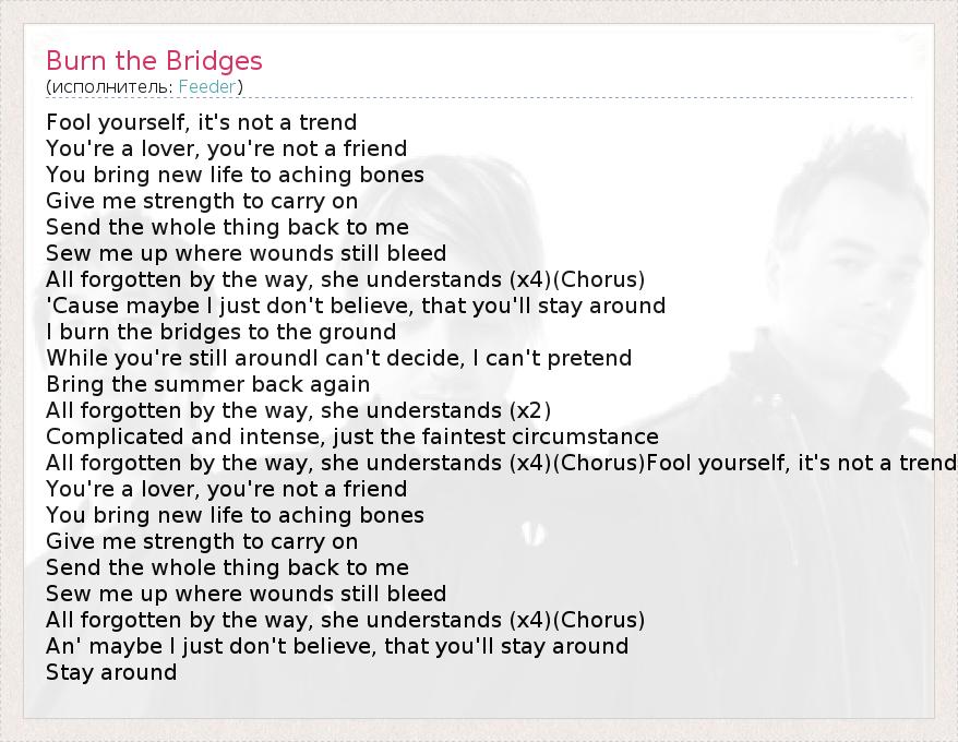 А как ты думаешь, о чем песня "Burn the Bridges" ?