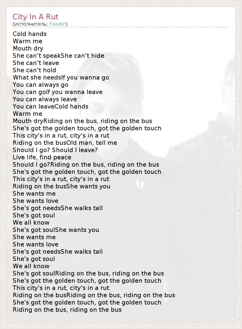 А как ты думаешь, о чем песня "City In A Rut" ?