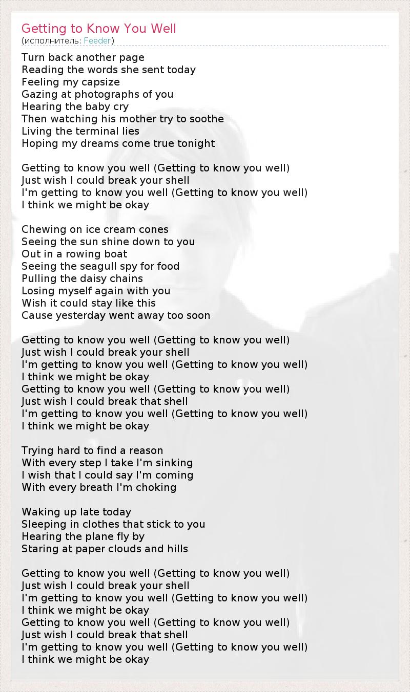 А как ты думаешь, о чем песня "Getting to Know You Well" ?