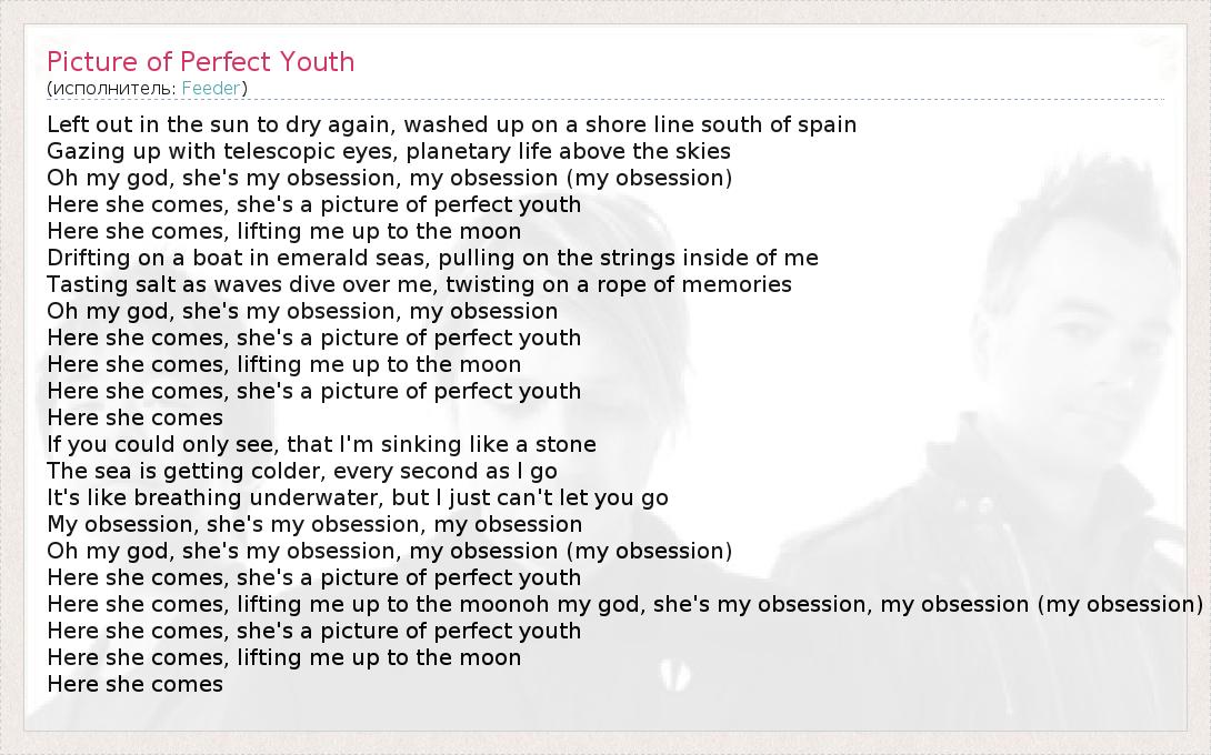 А как ты думаешь, о чем песня "Picture of Perfect Youth" ?