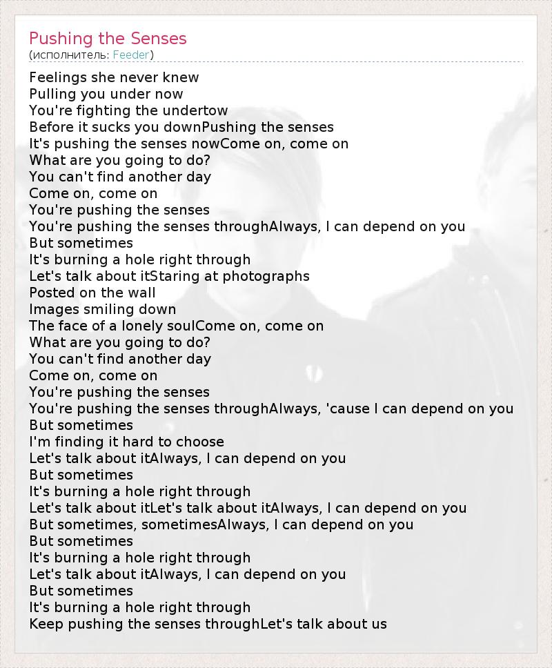 А как ты думаешь, о чем песня "Pushing the Senses" ?