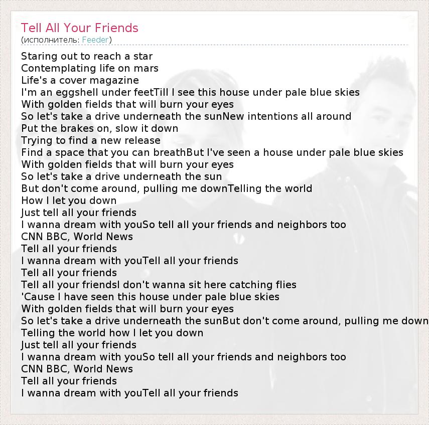 А как ты думаешь, о чем песня "Tell All Your Friends" ?