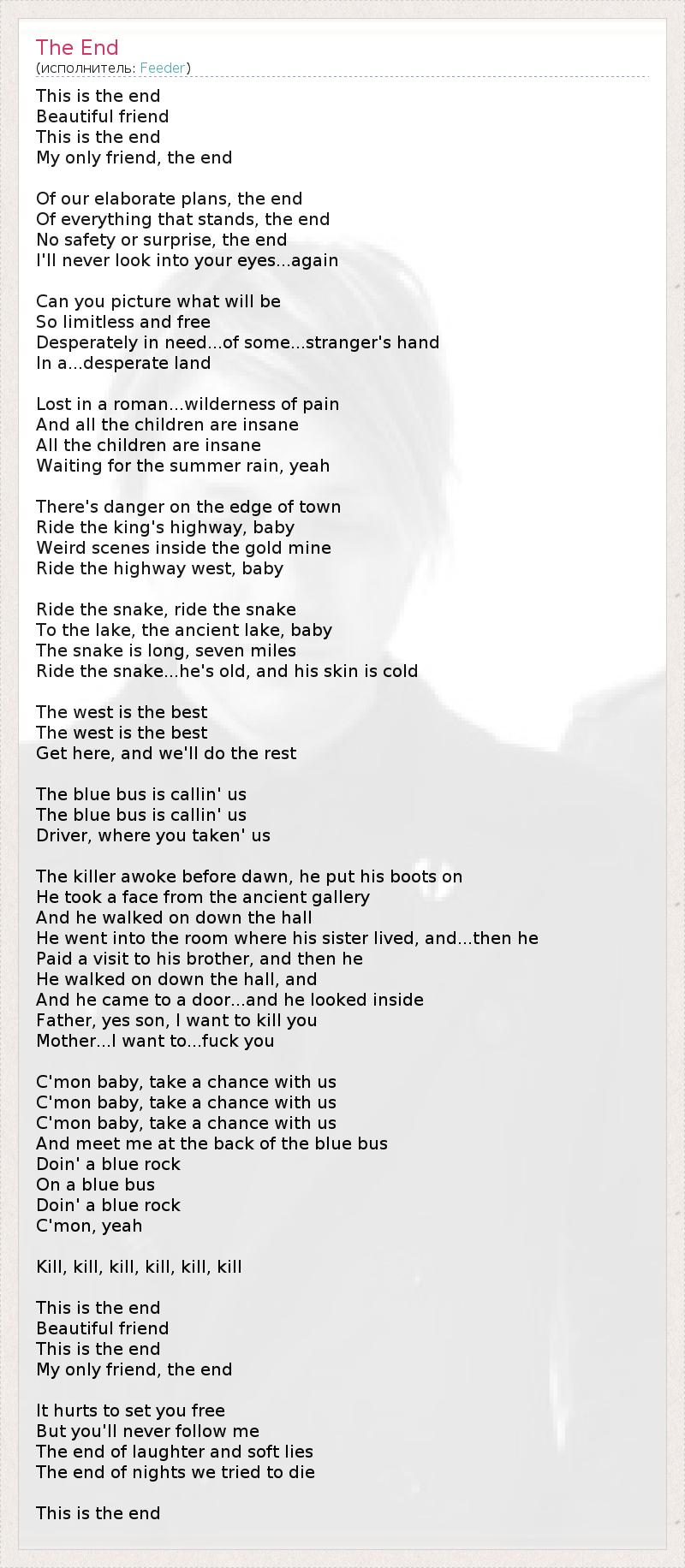 Это интересно:Feeder - бритрок-группа из Южного Уэльса. Образована в 1995 году двумя старыми друзьями - вокалистом Грантом Николасом и ударником Джоном Ли. Чуть позже к группе примкнул Така Хиросе, японец по происхождению. После выпуска двух демо-альбомов Two Colours (1995) и Swim (1996) ребята приглянулись лейблу Echo Records. Подписав контракт с Echo, Feeder стали записывать дебютный альбом Polythene. Не сказать, что слишком удачный,... продолжение