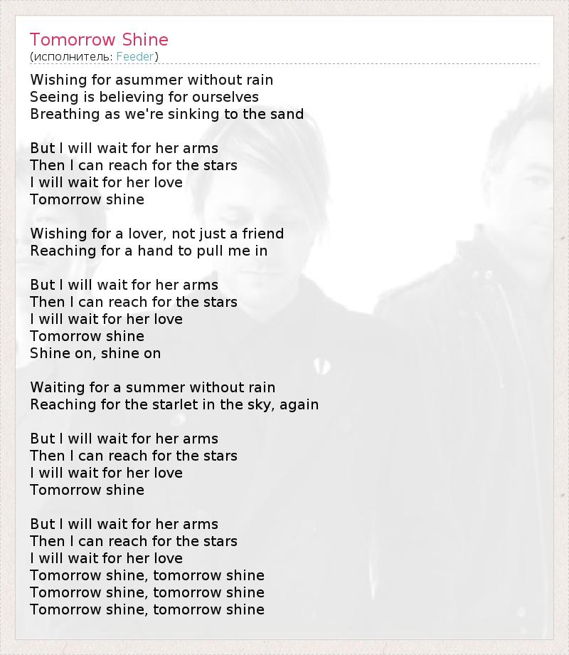 А как ты думаешь, о чем песня "Tomorrow Shine" ?