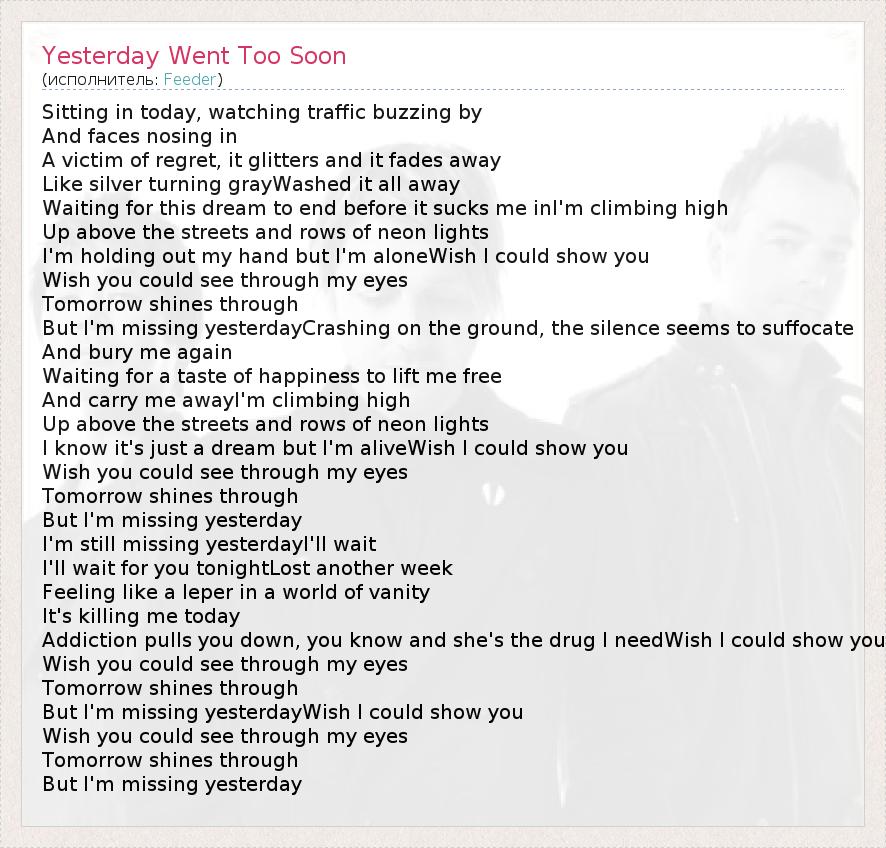 А как ты думаешь, о чем песня "Yesterday Went Too Soon" ?