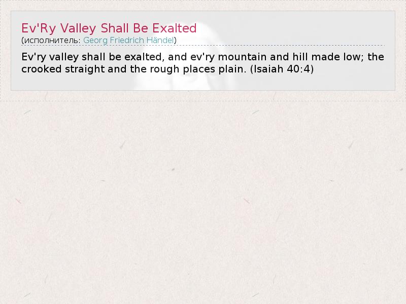 А как ты думаешь, о чем песня "Ev'Ry Valley Shall Be Exalted" ?