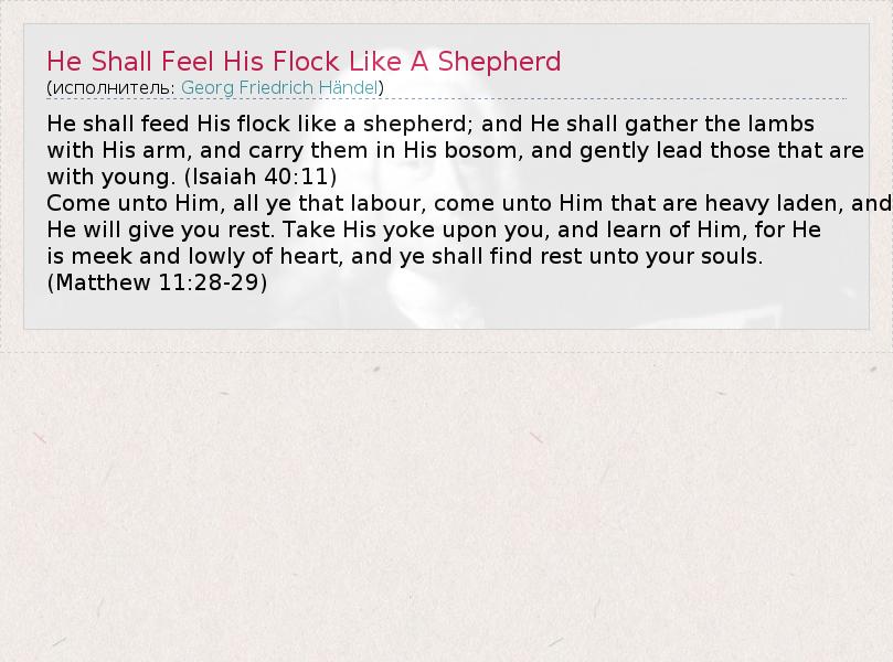 А как ты думаешь, о чем песня "He Shall Feel His Flock Like A Shepherd" ?