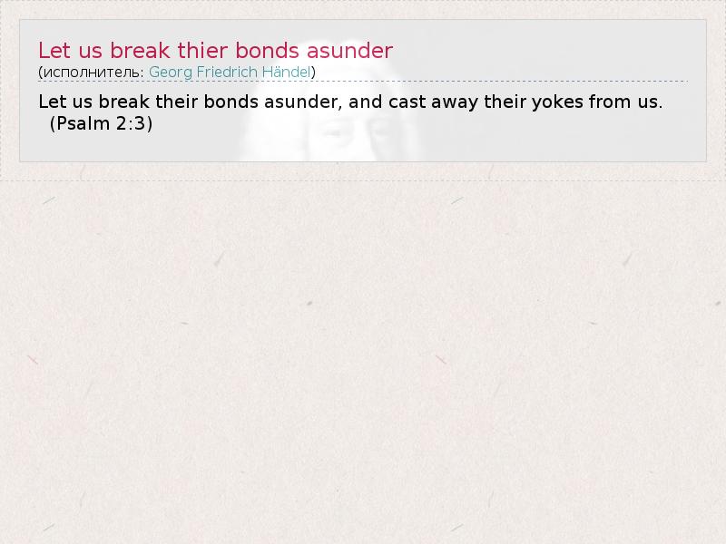 ГлавнаяИсполнителиGeorg Friedrich HändelLet us break thier bonds asunder