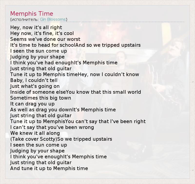 А как ты думаешь, о чем песня "Memphis Time" ?