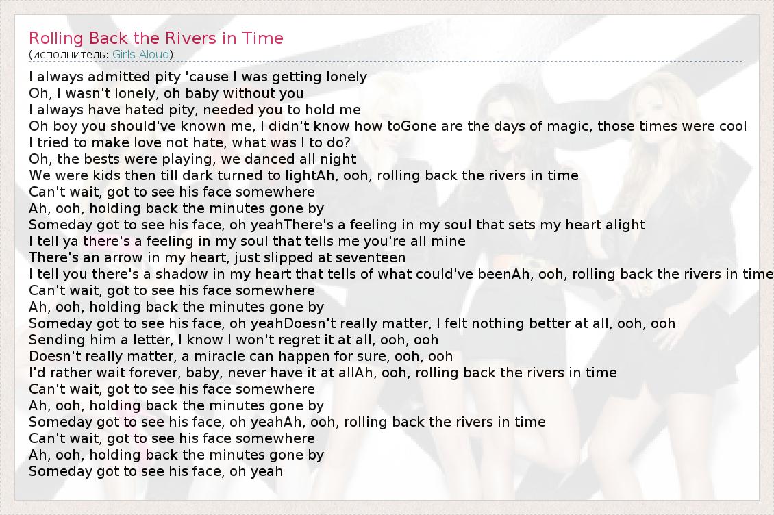 ГлавнаяИсполнителиGirls AloudRolling Back the Rivers in Time