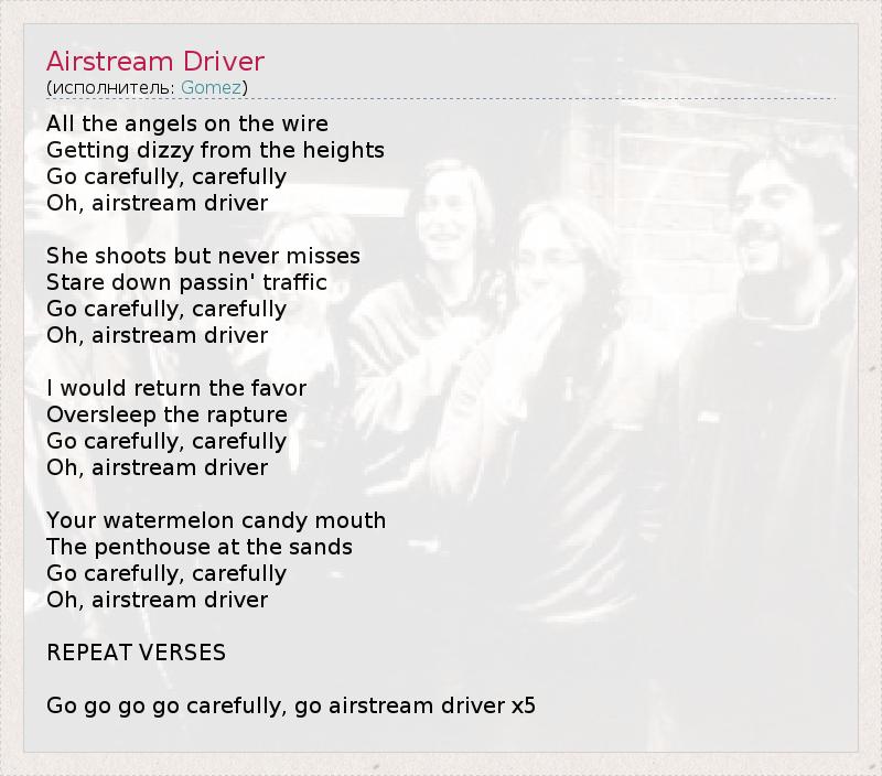 А как ты думаешь, о чем песня "Airstream Driver" ?