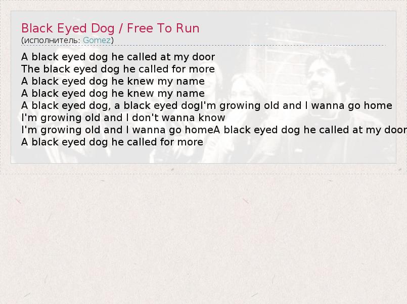 А как ты думаешь, о чем песня "Black Eyed Dog / Free To Run" ?