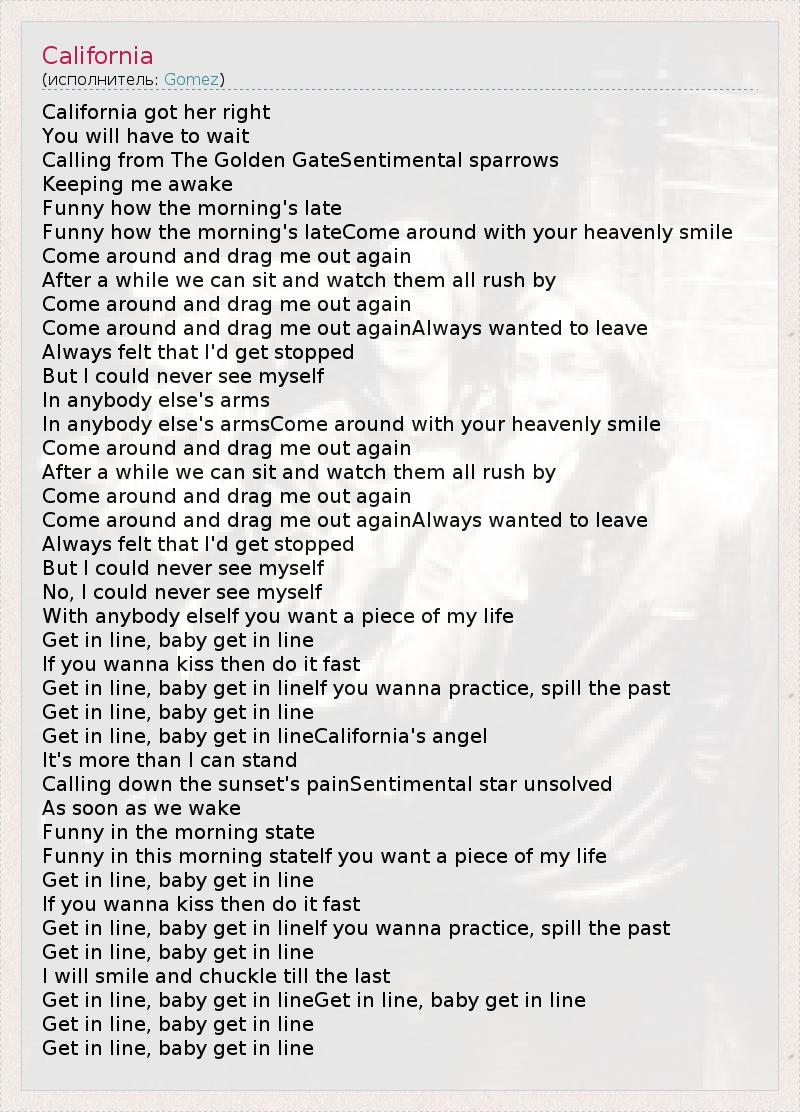 Get in line, baby get in lineCalifornia's angel