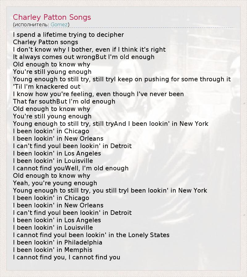 ГлавнаяИсполнителиGomezCharley Patton Songs