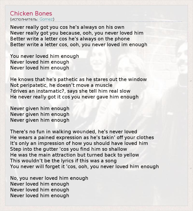 А как ты думаешь, о чем песня "Chicken Bones" ?