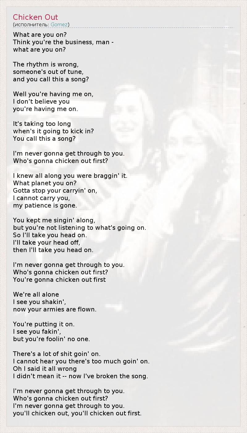 А как ты думаешь, о чем песня "Chicken Out" ?