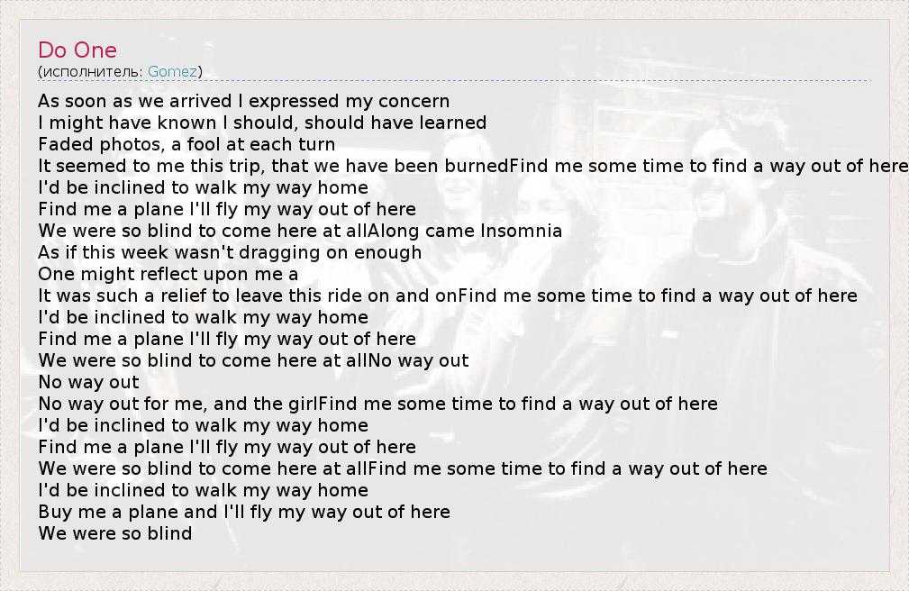 It seemed to me this trip, that we have been burnedFind me some time to find a way out of here