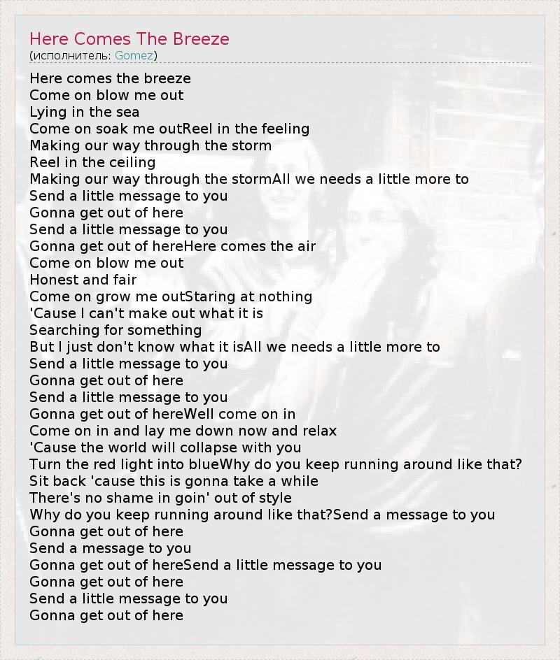 А как ты думаешь, о чем песня "Here Comes The Breeze" ?