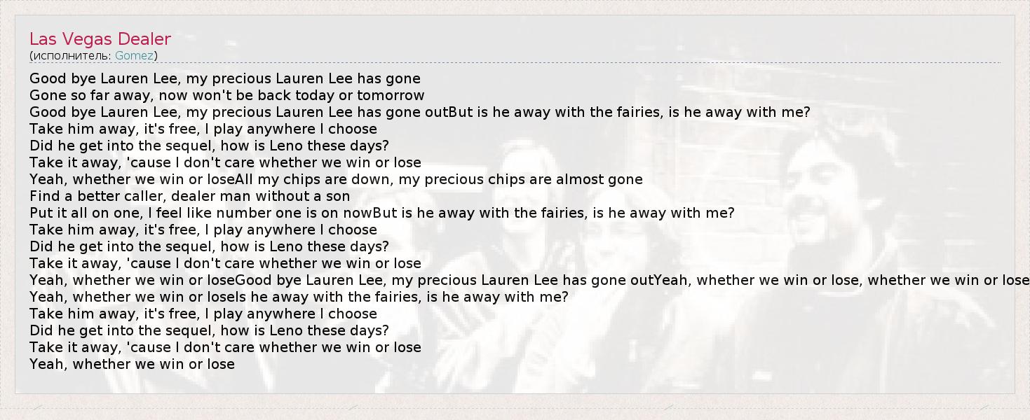 А как ты думаешь, о чем песня "Las Vegas Dealer" ?