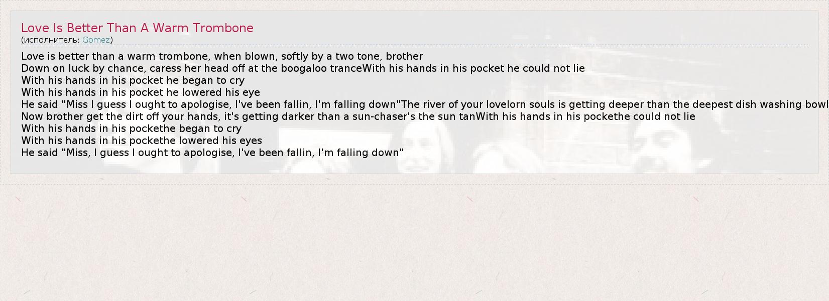 А как ты думаешь, о чем песня "Love Is Better Than A Warm Trombone" ?