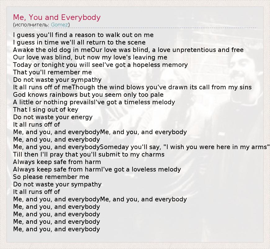 ГлавнаяИсполнителиGomezMe, You and Everybody