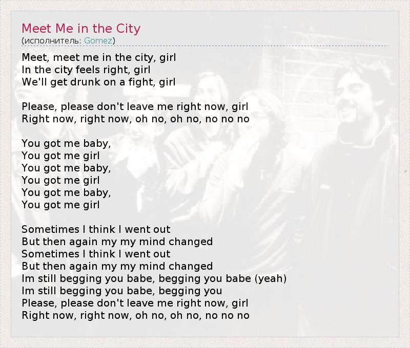 ГлавнаяИсполнителиGomezMeet Me in the City