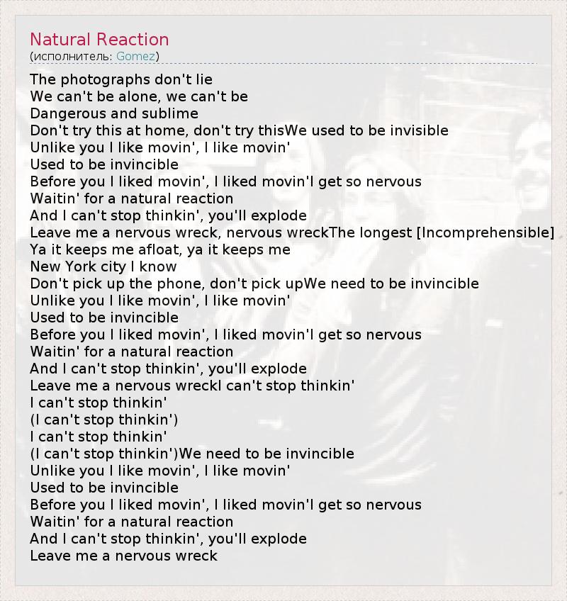 А как ты думаешь, о чем песня "Natural Reaction" ?
